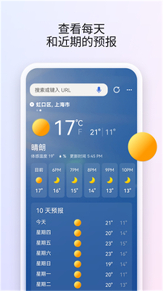 - 生活化信息一站式获取: 除了新闻,软件还将天气查询、精美壁纸设置等日常高频需求聚合在内。用户无需跳转多个应用,即可快速掌握本地天气变化,并一键更换浏览器视觉主题,将实用性与美观性完美结合。