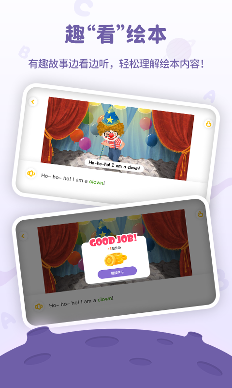 - 一点即响的单词发音:绘本中的每个关键单词和句子都支持点击。孩子触碰屏幕上的小动物或物品时,不仅会有生动的动画反馈,更能听到地道的美式或英式发音,像玩游戏一样纠正自己的口语。