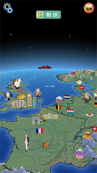 - 主题式知识探索:在地球上方选择不同的学习主题(如“世界奇迹”、“国家标志”),软件会引导你进入相关的趣味问答环节,让知识吸收过程更具互动性和挑战性。