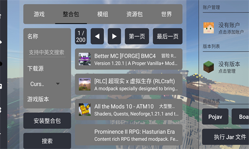 - 一站式资源获取:软件内直接集成了丰富的游戏资源中心。玩家可以轻松浏览、下载并安装各类Mod模组、材质包、光影以及玩家社区制作的精彩整合包,无需在多个网站间辗转,极大简化了模组游戏的入门流程。