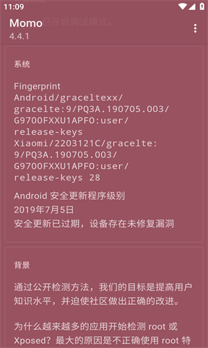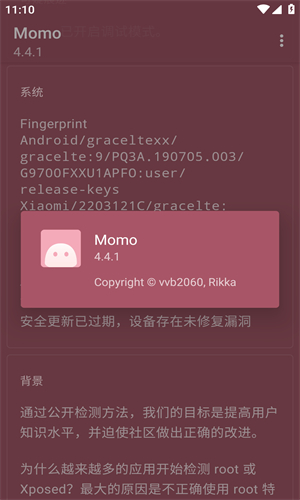 - 风险预警: 如同汽车仪表盘的故障灯,当手机被Root、调试模式开启或检测到可疑模块时,Momo会清晰告警,让你在问题发酵前及时知晓。