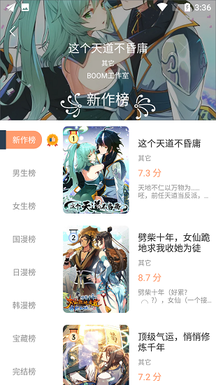 - 多维分类导航:除了常规的题材(热血、恋爱、玄幻等)、进度(连载、完结)分类,还设有独特的“男频/女频”入口,并提供了丰富的官方与用户书单,让筛选不再是机械操作,而是一种兴趣探索。