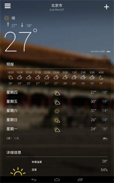打开软件后,其主界面往往以一张与当前天气和地理位置相匹配的高清实景图作为背景,视觉体验极佳。除了提供最基础的实时温度和多日预报,雅虎天气的深度功能才是其专业性的体现: