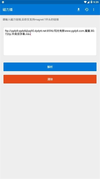 - 一站式资源服务:它满足了从搜索、解析到播放的全链条需求。用户获取到的磁力链接,只需在软件内输入或保存,即可快速完成解析并直接播放,省去了调用其他下载工具的步骤。